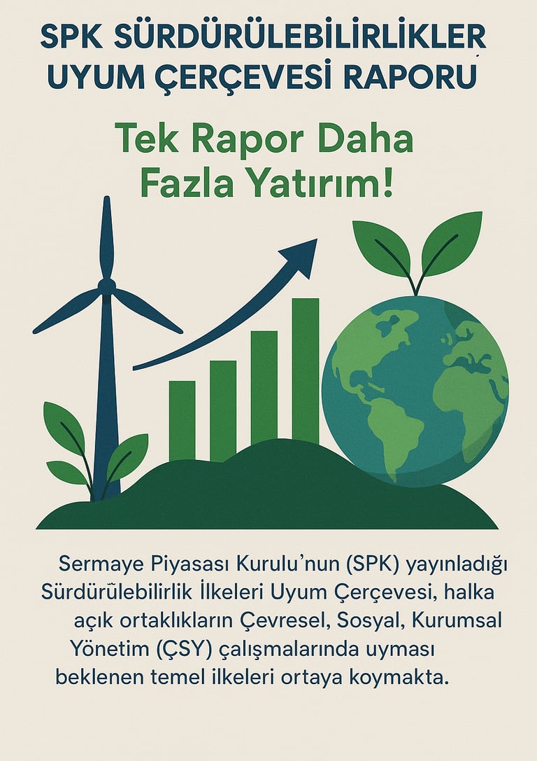 SPK'nın sürdürülebilirlik uyum çerçevesine uygun şekilde çevresel ve sosyal sorumluluklarınızı raporlamanızı sağlıyoruz.